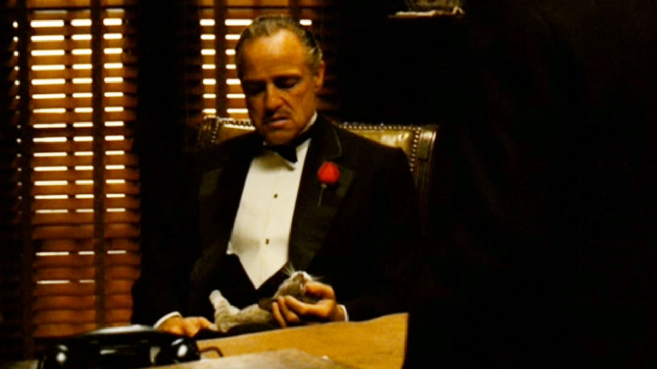 Como líder mafioso de la ciudad de Nueva York, Don Vito Corleone existe más allá del bien y mal, y puede ordenar un asesinato con la misma facilidad con la que ordena el desayuno. Vito Corleone valora el respeto y la amistad recíproca. Simplemente quiere asistir a la boda de su hija y, en cambio, está atendiendo exigencias que no considera importantes. Lo más interesante es que hay un lindo gato felizmente descansando en su regazo, un detalle que no estaba planeado originalmente.