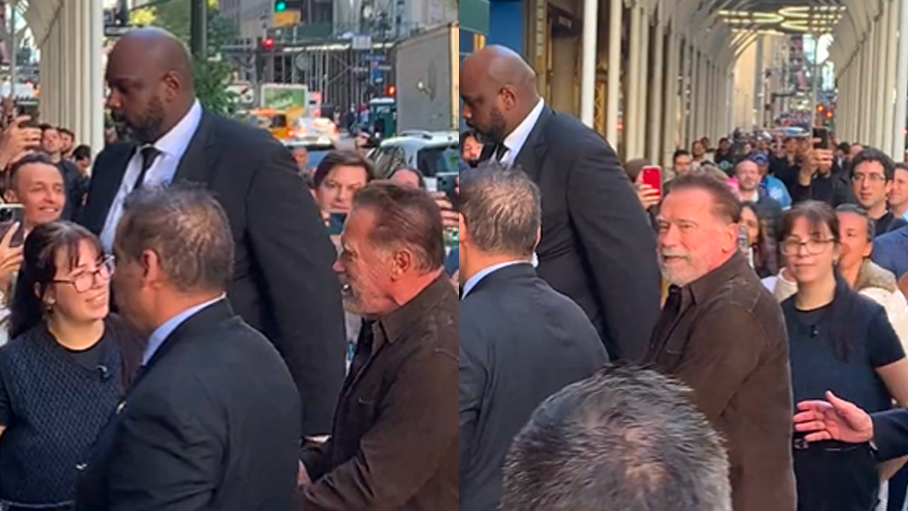 El ex gobernador de California recién se hizo viral en redes sociales lluego de ser captado con uno de sus guardaespaldas. El actor de Los indestructibles tomó su día libre para visitar la librería Barnes&Noble, donde cientos de fans estaban reunidos con la esperanza de recibir un autógrafo, tomarse una foto o por lo menos saludarlo, sin embargo, se llevaron una sorpresa cuando Schwarzenegger bajo de su auto.
