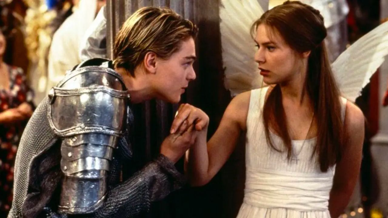 En esta adaptación a la obra de William Shakespeare, DiCaprio interpreta a un Romeo enamorado de Claire Danes, Julieta, en una ficción ambientada en la ciudad actual de Verona Beach donde los Montesco y los Capuleto viven como dos familias enfrentadas.