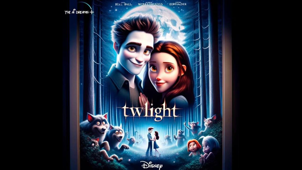 En un póster, se puede apreciar cómo se verían los protagonistas en la primera película si fuera propiedad del estudio de Disney. A diferencia de la versión que todos conocemos, donde Bella y Edward tienen el rostro serio repleto de misterio, aquí los personajes muestran una enorme sonrisa. Los dos enamorados cuentan con detalles que cualquier fanático de Pixar podría reconocer ya que se asemeja al trabajo de Los increíbles y Up: Una aventura de altura.