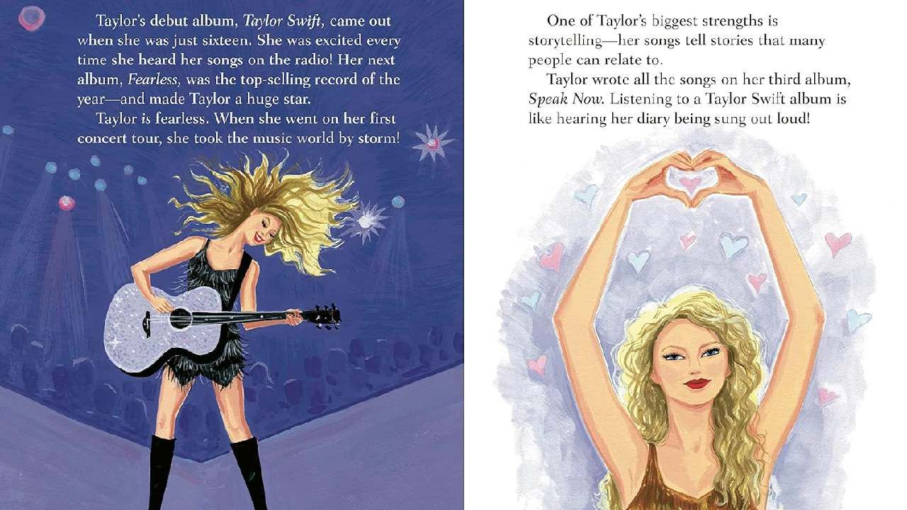Este libro infantil de A Little Golden recorre su vida de una manera en la que Taylor muestra como luchó por hacer realidad sus sueños, enfrentando desafíos y obstáculos en el camino. A lo largo de los años, ha demostrado una gran determinación y perseverancia en lo que más ama, que es la música y a su vez manteniendo la esencia que la caracteriza desde sus inicios. Esta biografía ilustrada tiene dibujos muy atractivos y lindos que hacen perfecta su lectura y en la que resalta la importancia de la amistad con un mensaje positivo.