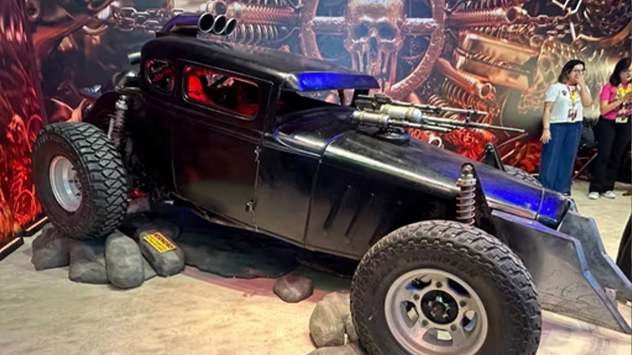 Esto se encuentra como parte de las múltiples exhibiciones en la convención, donde también tuvimos el primer vistazo a uno de los automóviles que forman parte de la película. Por supuesto se trata de un vehículo modificado con enormes piezas y armamento.