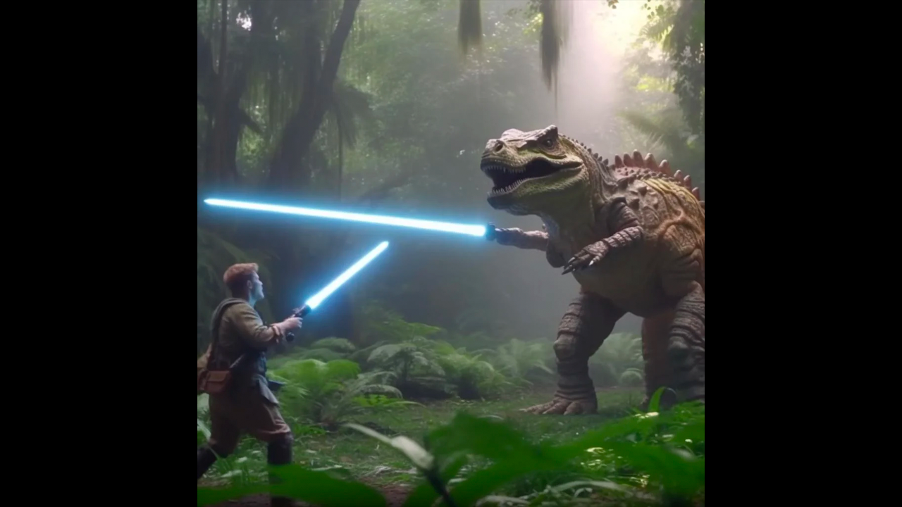 Un reptil que tal vez se ha convertido en Jedi como Obi-Wan Kenobi y Luke Skywalker, aparece en la ilustración creada con inteligencia artificial. Esta criatura, a pesar de tener un par de brazos muy cortos en comparación con el resto de su cuerpo, sería todo un experto con su sable de luz. En caso de necesitar un poco de ayuda extra, el dinosaurio podría recurrir a usar la Fuerza como lo hace todo Jedi y así dar una batalla a aquellos que se atreven a poner en juego el equilibrio de la galaxia.
