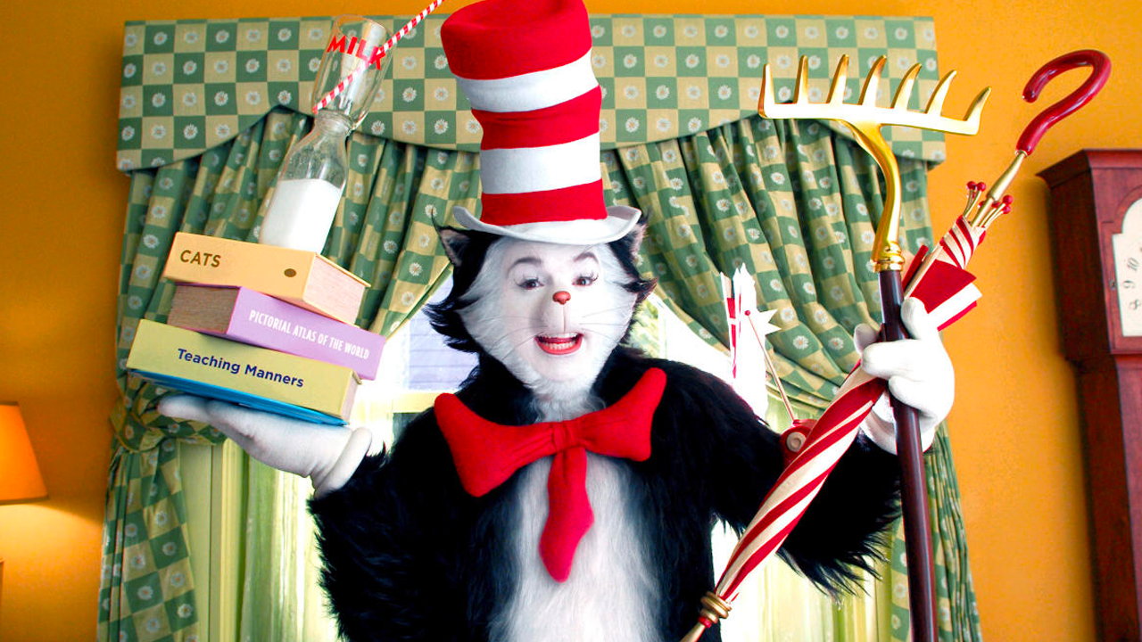 Se trata de El gato, interpretado por Mike Myers, junto a Dakota Fanning y Spencer Breslin. Basado libremente en el libro del mismo nombre del Dr. Seuss de 1957, El gato fue la segunda y última adaptación del famoso cuentista. El resultado fue tan desastroso que la viuda de Seuss, Audrey Geisel, no quedó satisfecha con el rumbo que tomó la película, por lo que decidió prohibir cualquier otra adaptación en vivo de las obras de su difunto marido. Esto ocasionó que la secuela de El gato quedara completamente fuera del mapa.