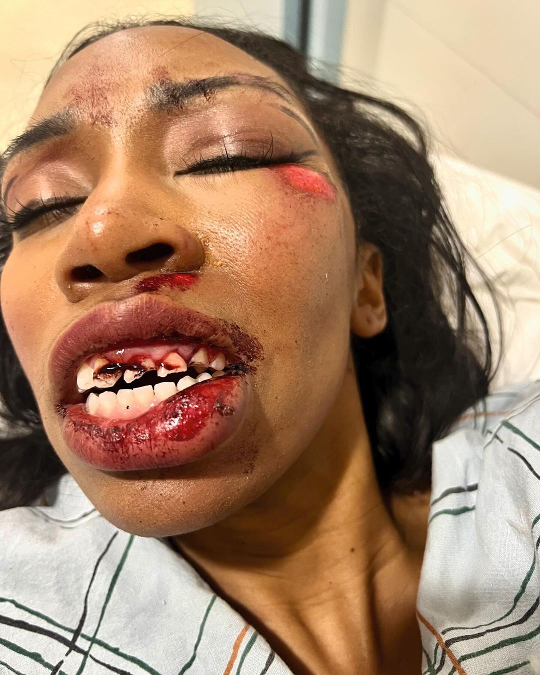 Esta misma publicación fue acompañada de una impactante imagen donde aparece Carrie Bernans con el rostro gravemente herido. “Tiene algunos huesos rotos, fracturas y dientes astillados pero agradece a Dios que está viva. Nueve personas resultaron heridas incluyendo 3 oficiales de policía. La policía lo atrapó poco después y lo arrestó. En medio del caos del incidente de Año Nuevo, ella se aferra a un inmenso sentido de gratitud por la vida misma”.
