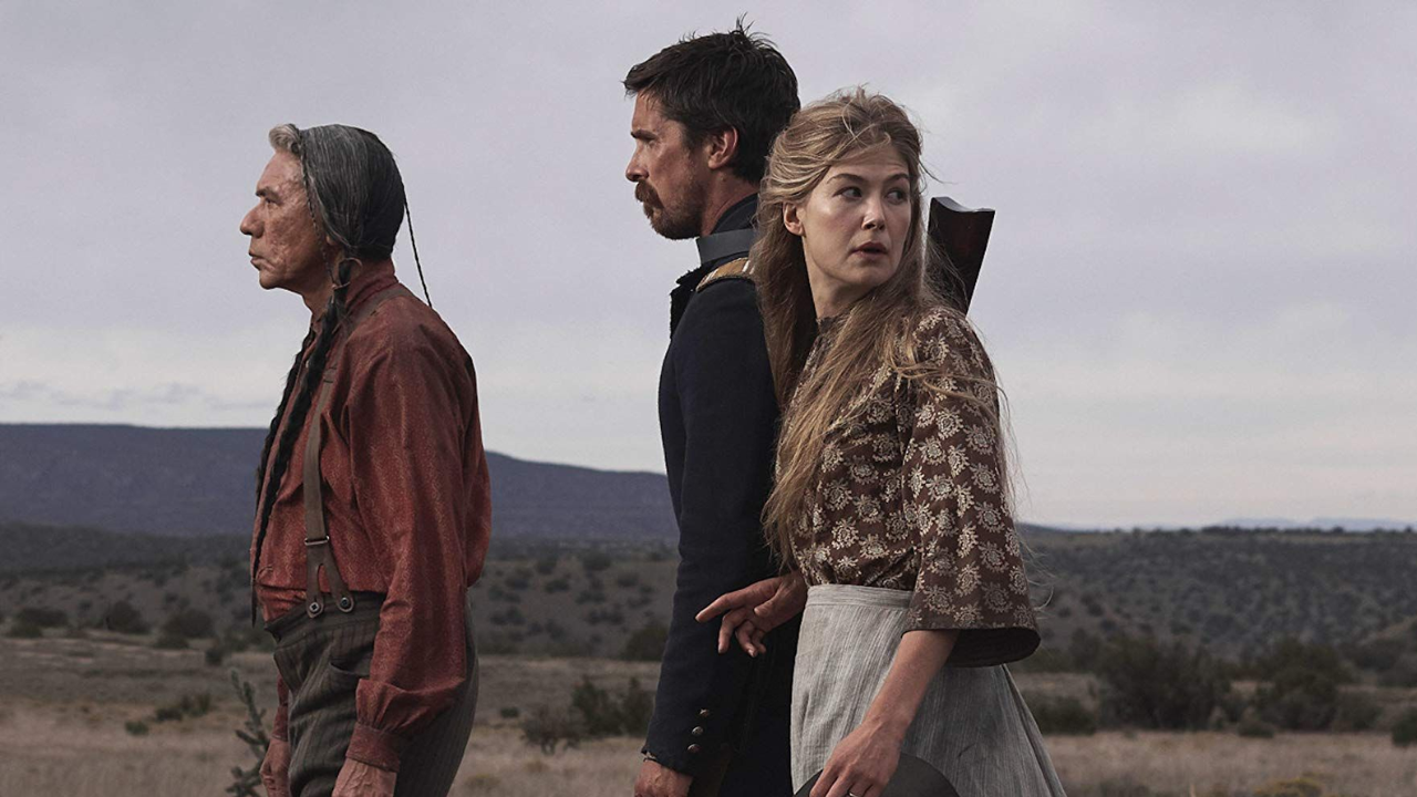Hostiles: Violencia americana ofrece un mundo sombrío donde la muerte es común y siempre cruel, mostrando una visión del viejo oeste que se mantiene en contacto con los logros cinematográficos anteriores de Cooper como Loco corazón y Pacto criminal. Rosalie (interpretada por Rosamund Pike) es el primer personaje que conocemos, luchando por ponerse a salvo con dos niñas y un bebé cuando el comanche aparece en su hogar remoto y finalmente mata a tiros a todos sus seres queridos, dejándola en estado de shock.