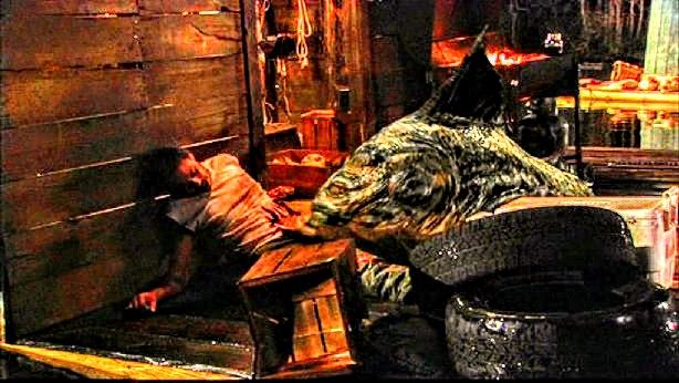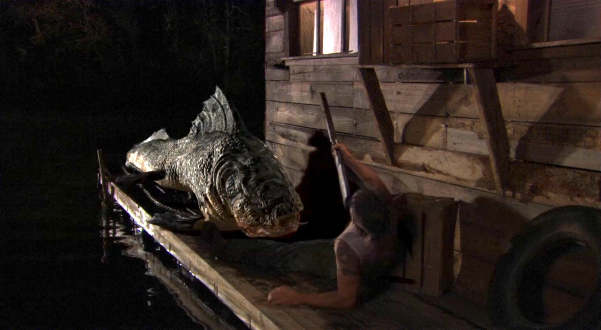 A partir de entonces, los vecinos de una población de casas flotantes situada en medio de la marisma ya no podrán vivir en paz. Amenazados por la bestia, intentan desesperadamente huir y refugiarse en una isla cercana. Pero pronto descubren, horrorizados, que la extraña criatura también puede sobrevivir en tierra.