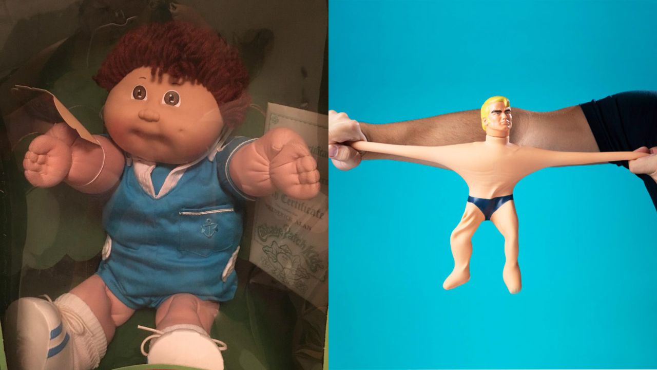 Si es que no lo sabías, las Cabbage Patch son unas muñecas sumamente populares que tuvieron un boom durante la década de 1980, mientras que los Stretch Armstrong o Mr. Músculo son esos muñecos que puedes estirar y estirar sin que se rompan y están hechos con plástico y maicena.