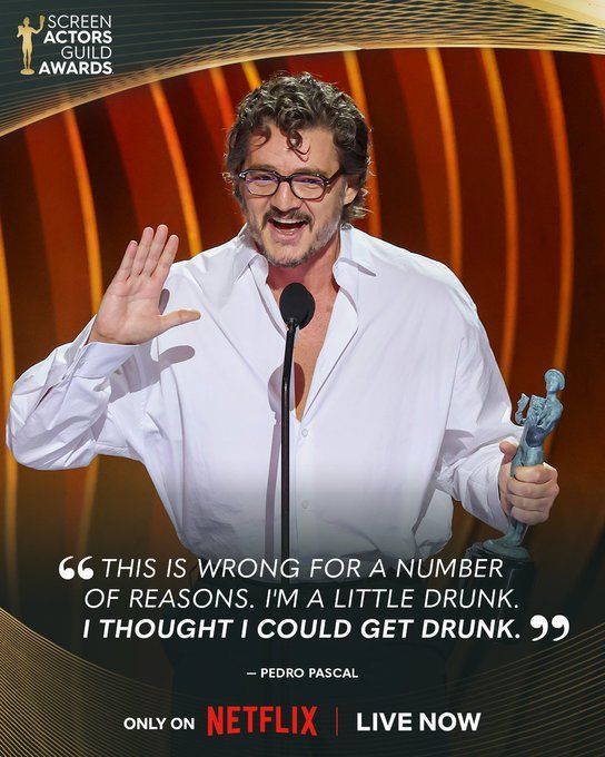 Esta noche Pedro Pascal conquistó a las audiencias y a los miembros del Sindicato de Actores de Cine-Federación Estadounidense de Artistas de Radio y Televisión al ganar el premio como Mejor Actor por su participación en la serie The last of us, que protagonizó junto a Bella Ramsey.
