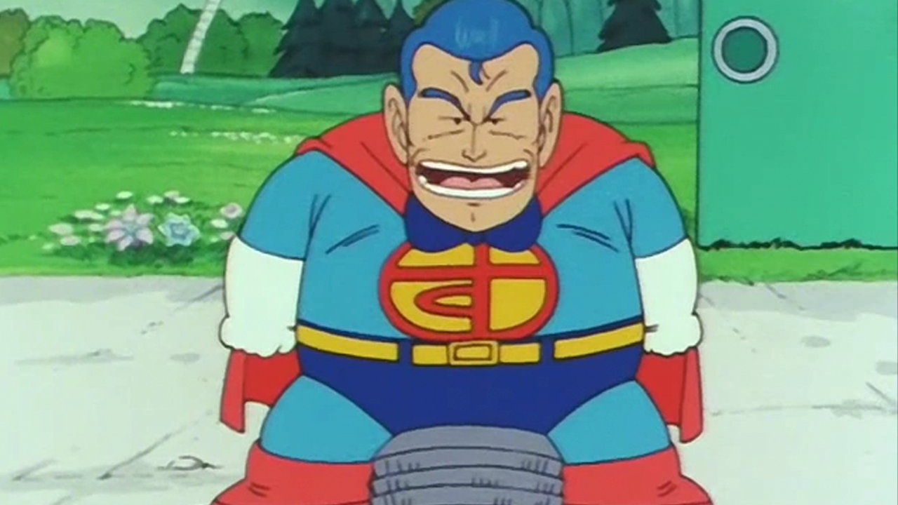 En realidad se trata de Suppaman, un personaje "wannabe" del verdadero hijo de Kriptón que apareció en Dragon Ball. A diferencia de Kal-El, Suppaman no tiene superpoderes ni tampoco es alguien que dedique sus días a combatir el crimen. Su verdadera identidad es la de Kenta Kuraaku, un reportero que trabaja en una empresa de noticias.