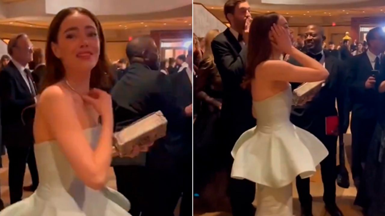 La también actriz de Birdman se encontraba en una sala fuera del teatro junto a otras personas mientras venía la premiación a través de una pantalla y cuando nombraron a Poor Things como la ganadora en la categoría de Mejor maquillaje, la actriz parecía en shock y no podía dejar de mover las manos de la emoción. ¿Te imaginas cómo será su reacción si gana el Oscar?