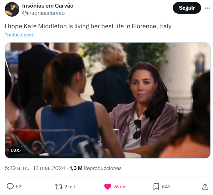 La conversación en internet voló por completo cuando lo que anteriormente se conocía como Twitter se llenó de memes sobre la experiencia fallida de Willy Wonka y cómo la persona detrás de The Unknown podría ser Kate Middleton. La razón principal de esta broma fue que no se ha visto a la princesa desde diciembre de 2023 antes de Navidad y eso es sumamente inusual para miembros de la Familia Real. aunque la razón de su ausencia fue compartida, nadie cree que realmente se trate de eso.