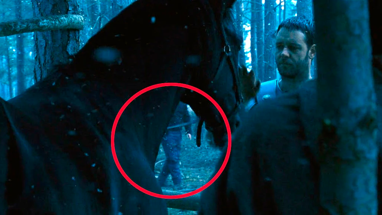 Si bien el esfuerzo invertido por el cineasta encargado de Napoleon cosechó sus frutos al ser un retrato cautivador de la antigua Roma de la forma más realista posible, la escena en particular con el error al que nos referimos sucede después de 21 minutos y 57 segundos de iniciada la cinta. A cuadro, podemos ver a Maximus (Crowe) alimentando a su caballo con una manzana, cuando de pronto se ve al fondo, justo detrás del equino, una persona con jeans, ¡que se inventaron casi 1693 años después!