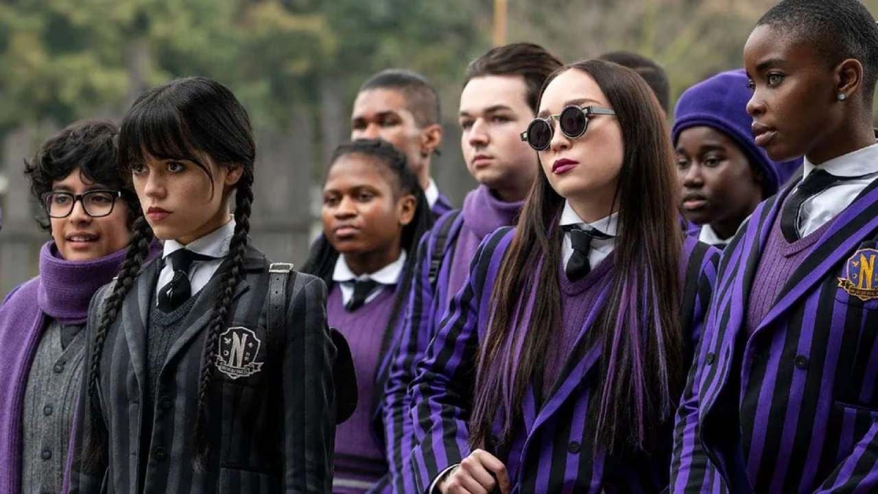 Merlina, interpretada por Jenna Ortega, invita a sumergirnos en la Academia Nunca Más, un internado para jóvenes con habilidades extraordinarias. A lo largo de ocho episodios, la serie explora los misterios que rodean a la Academia y resolver un asesinato que involucra a sus padres y navegar por las complejidades de la vida adolescente.