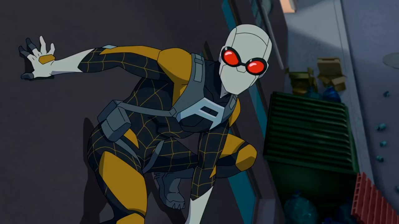 Durante su confrontación con Angstrom Levy en el cierre de la temporada, el héroe con la voz de Steven Yeun vuela a través de un portal multiversal para estar frente a un héroe llamado Agente Spider. Aquí lo observa luchando contra el villano Omnipotus y sus varios brazos metálicos.