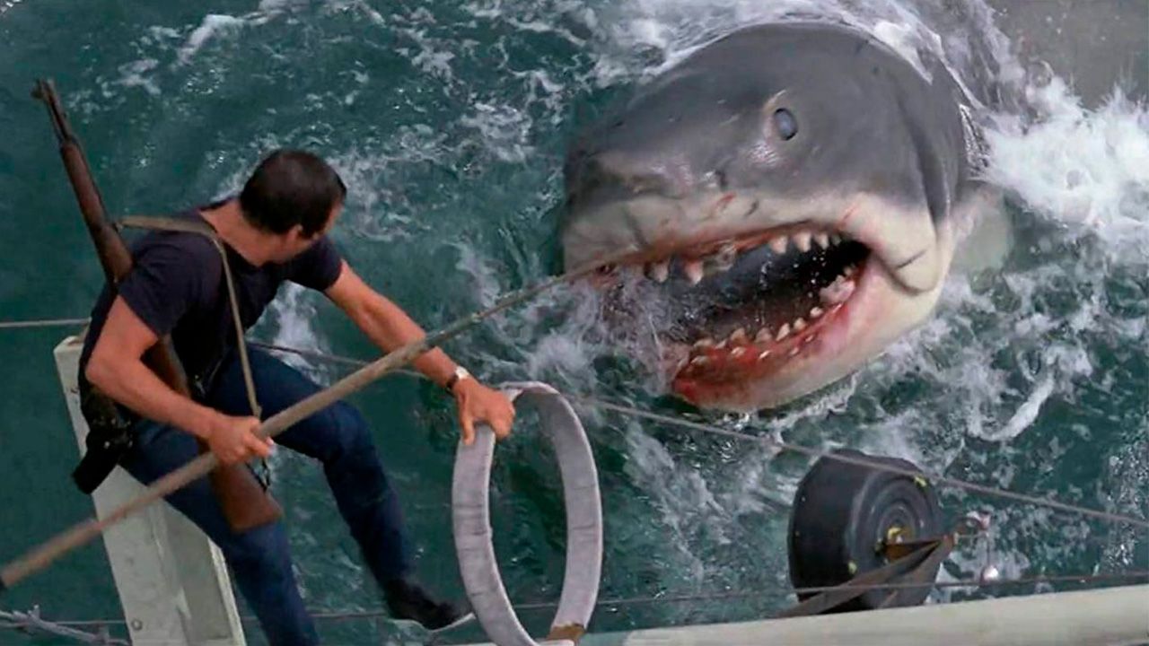 En aquella cinta, que cuenta con las actuaciones de Roy Scheider, Robert Shaw, y Richard Dreyfuss, tenemos a un enorme tiburón blanco aterrorizando a cientos de visitantes en la playa de Amity Island. Es así que un biólogo marino y un marinero deben cazar al animal, mientras que en Jurassic Park se trata de un T-Rex y otros dinosaurios clonados quienes desatan el caos en el parque de atracciones, provocando que Grant, Dern, Malcolm y demás deban tomar cartas en el asunto.