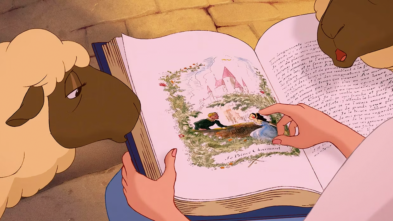Todo ocurre al inicio de la película, cuando Bella se encuentra cantando la melodía de “Bonjour”. Mientras la amante de los libros está interpretando la canción en la que dice que vive una vida provinciana, ella toma un tiempo para sentarse al lado de una fuente a leer su libro favorito y dos ovejas se acercan para ver lo que Bella está haciendo. La princesa canta sobre lugares lejanos, atrevidos combates con espadas, hechizos mágicos y un gallardo príncipe que se descubre hasta el final, lo que muchos han interpretado que Bella está hablando de otra figura de Disney.