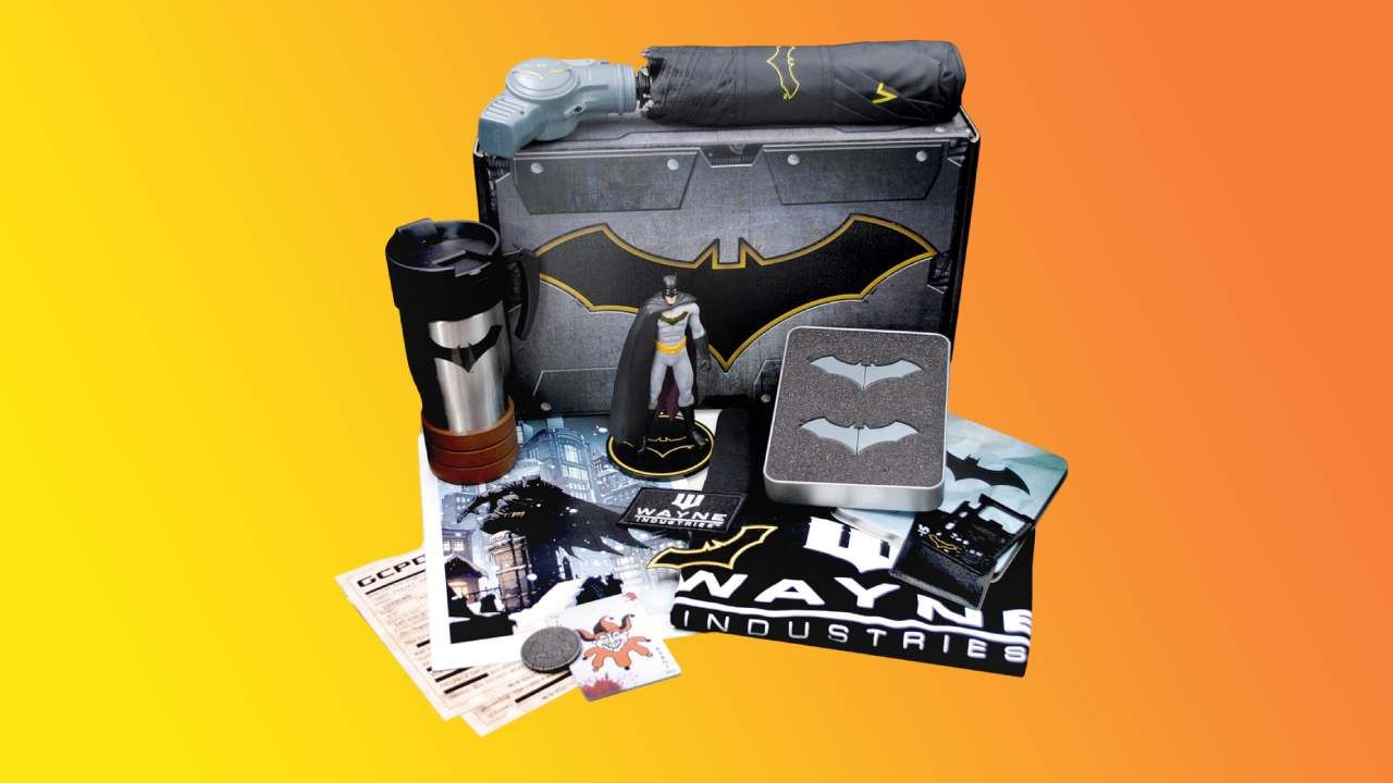 En el podrás encontrarás varios artículos increíbles de este personaje como por ejemplo, una playera que puedes escoger entre chica, media, grande o extra grande, también incluye una figura de vinil de Batman, mini póster, Batarang Push Pins, libreta, paraguas entre algunas cosas más. Además, la caja de este paquete tiene un diseño espectacular del hombre murciélago.