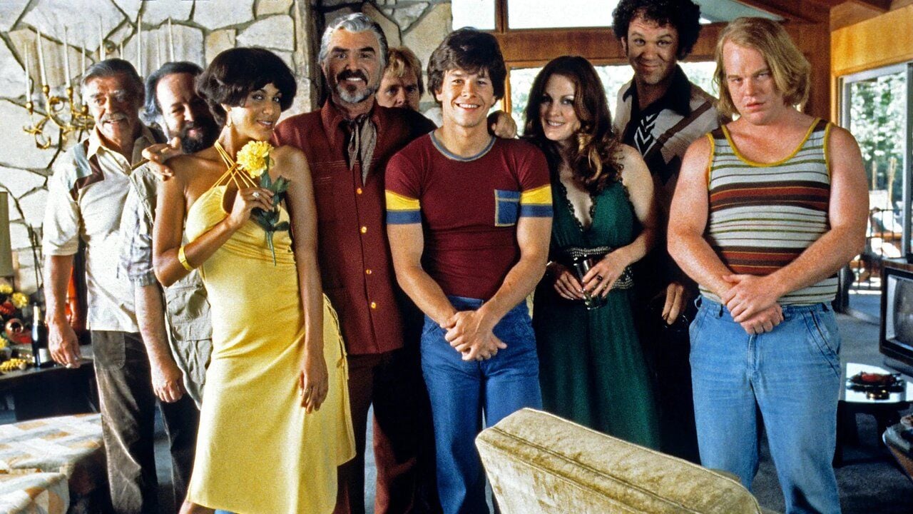 Boogie Nights, dirigida por Paul Thomas Anderson, era la película en cuestión, cuya historia sigue a un joven que trata de entrar en el negocio del cine pornográfico a finales de la década de 1970 y principios de los 80, en California, y que, al igual que otros personajes, tiene que lidiar con los altibajos de la industria. El largometraje terminó contando con un reparto coral de primer nivel, compuesto por estrellas como Mark Wahlberg, Burt Reynolds, Julianne Moore, William H. Macy, Don Cheadle, John C. Reilly, Philip Seymour Hoffman, Heather Graham y Luis Guzmán.