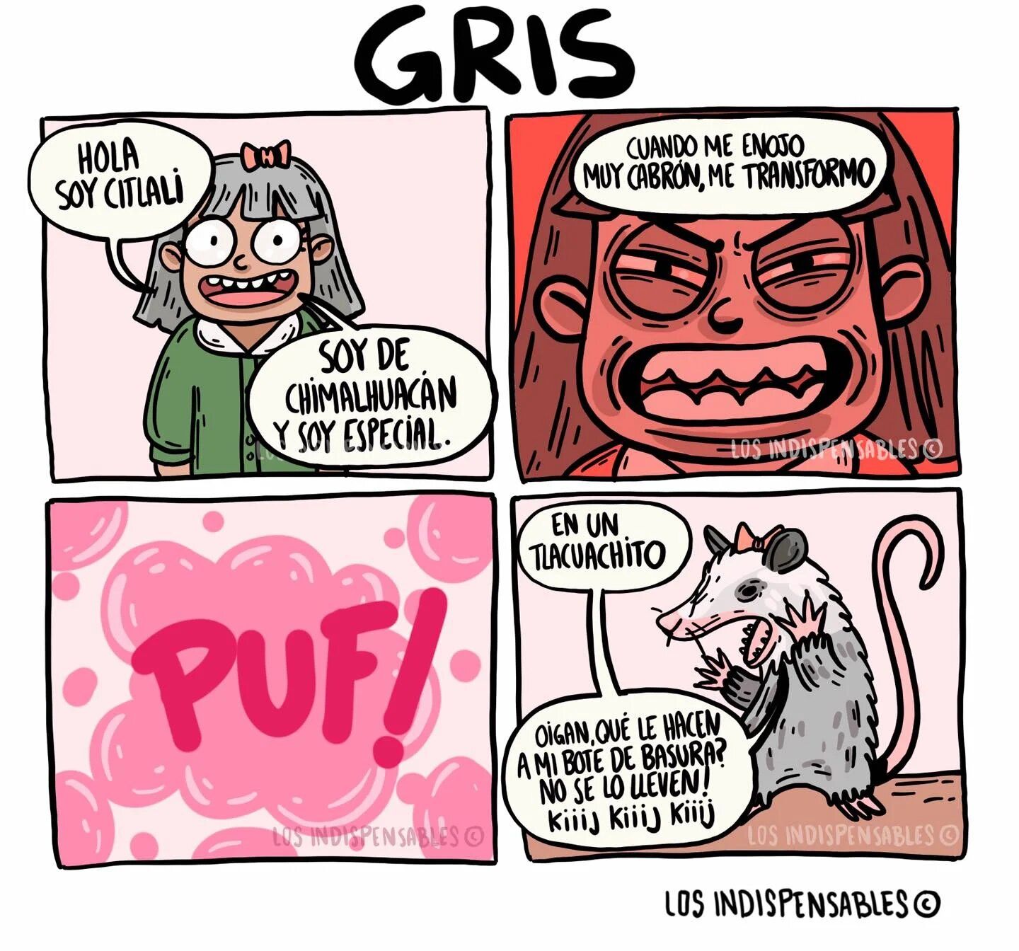 De un momento a otro y con un recuadro que lo ilustra, se transforma en un… ¡tlacuachito!, este momento es una forma divertida para referirse a la nueva película de Pixar Animation, pero a la versión mexicana. La diferencia radica en las cosas que hacen enojar a su protagonista, en este caso fue por un problema de basura: "Oigan, ¿qué le hacen a mi bote de basura? ¡No se lo lleven! Kiiij kiiij kiiij", dijo Citlati ya transformada en un tlacuache.