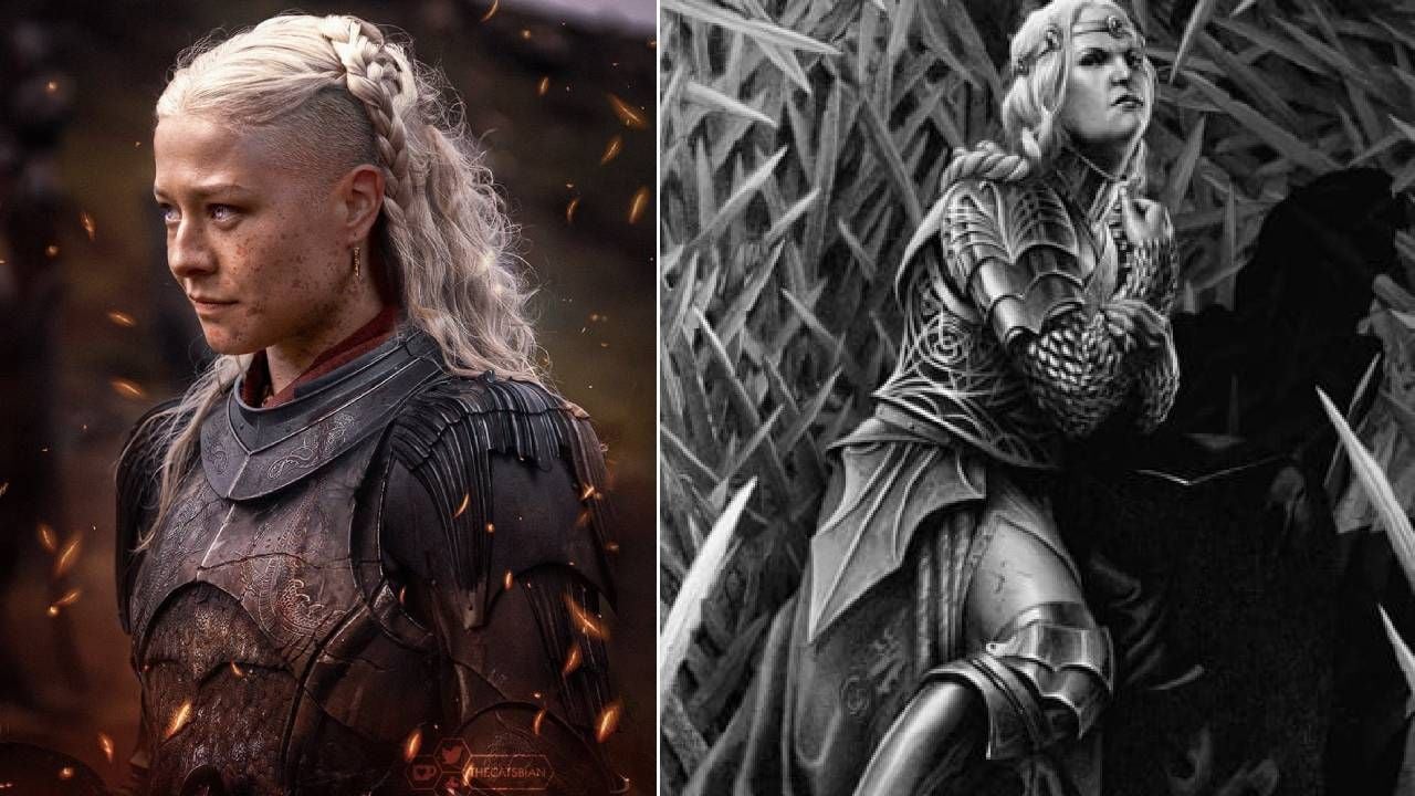 Una diseñadora aficionada en X (@Thecatsbian) realizó la interpretación que deben hacer en la serie, coloreando púrpura los ojos de la princesa, vistiendo la poderosa armadura oscura con detalles de la bestia escupefuego en su atuendo, no en los brazos como la descripción de libro lo indica. Pero, a juzgar por la ilustración, sí se basó mucho en el trabajo de vestuario mostrado en la serie de Ryan Condal y Miguel Sapochnik, el cual no tiene ninguna discusión.
