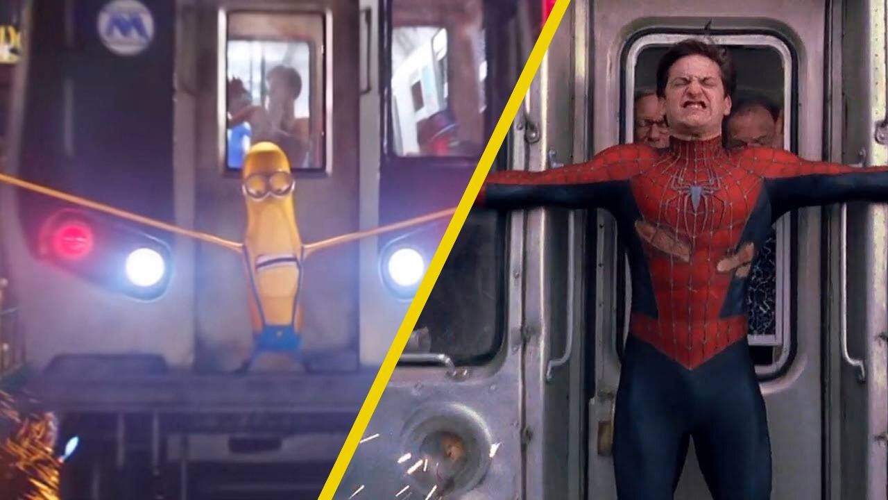 En Mi Villano Favorito 4 veremos replicada esta misma escena, pero ahora teniendo a un Minion elástico tratando de parar con sus brazos un tren a toda velocidad. Incluso cabe destacar que esta no es la primera vez que dicha secuencia es homenajeada, pues en Los Increíbles, estrenada en el año 2004, Mr. Increíble también frena un tren con sus propias manos casi al principio de la cinta.
