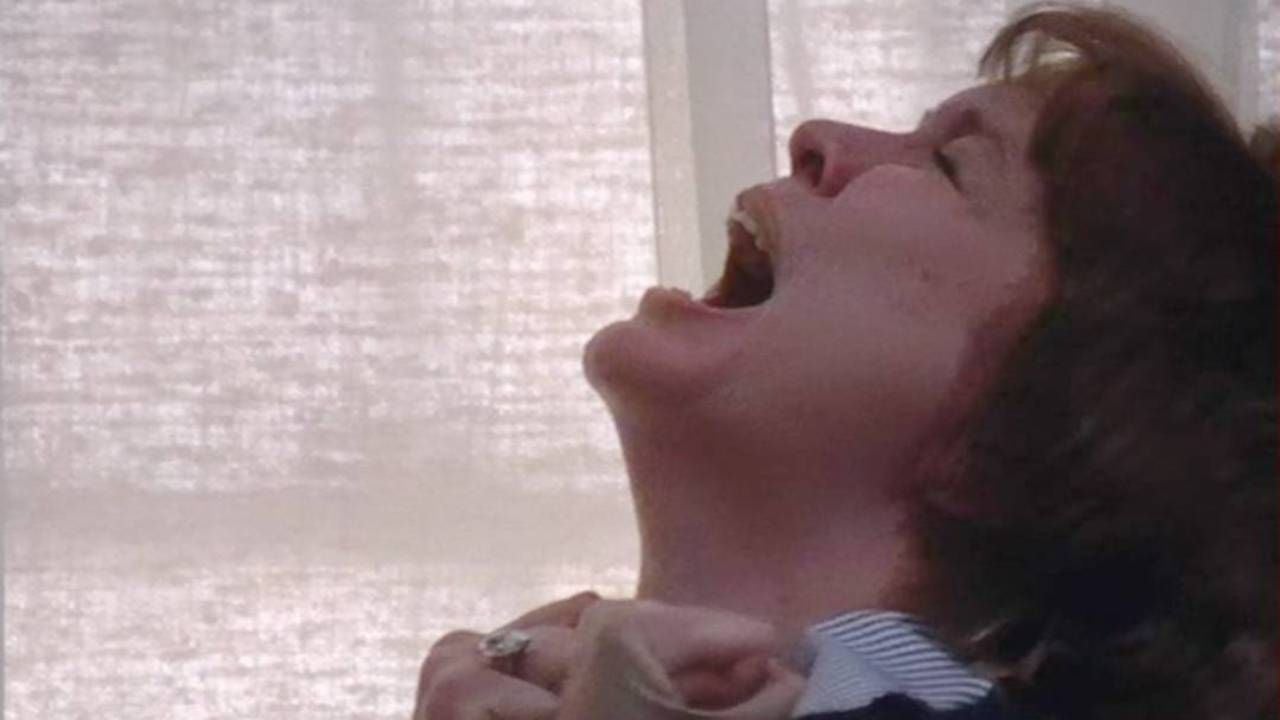 La también actriz de Réquiem por un sueño utilizó un arnés que la jalaría de la cama hacia el suelo para simular la caída, pero el jalón y posterior golpe fue tan fuerte que se lastimó la espalda de manera grave y la orilló a gritar fuertemente del dolor. Su columna vertebral tuvo daño permanente y se fracturó el coxis, por lo que su grito fue tan auténtico que el director decidió que usaría dicho metraje para el corte final.