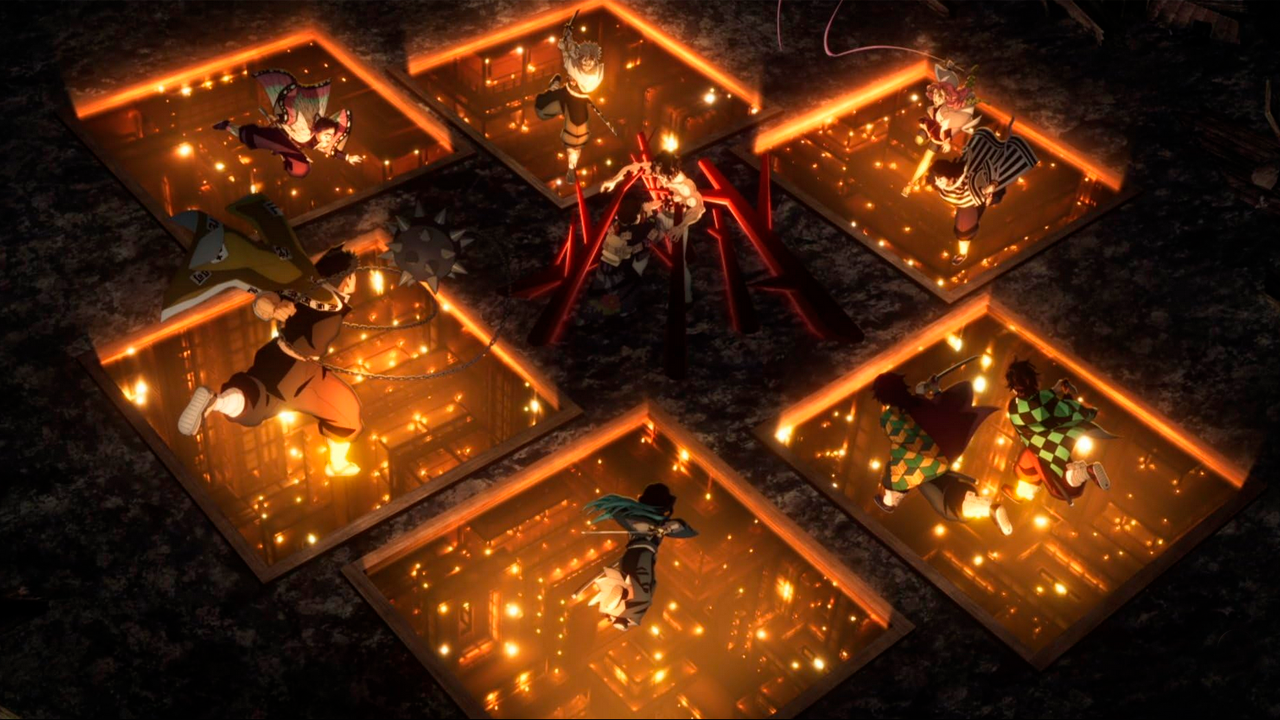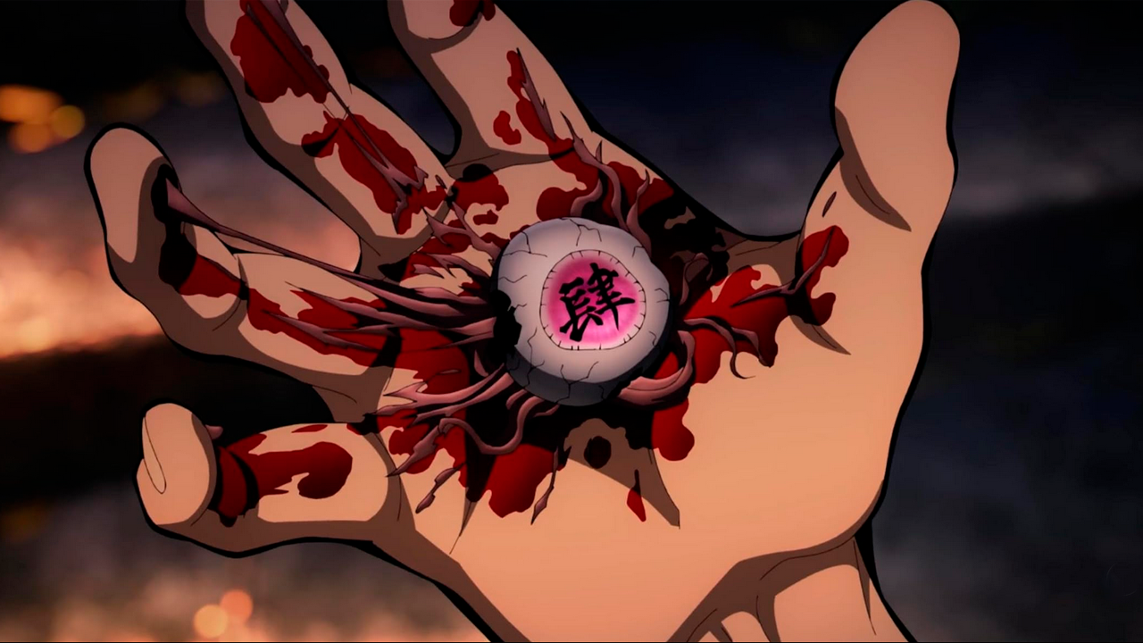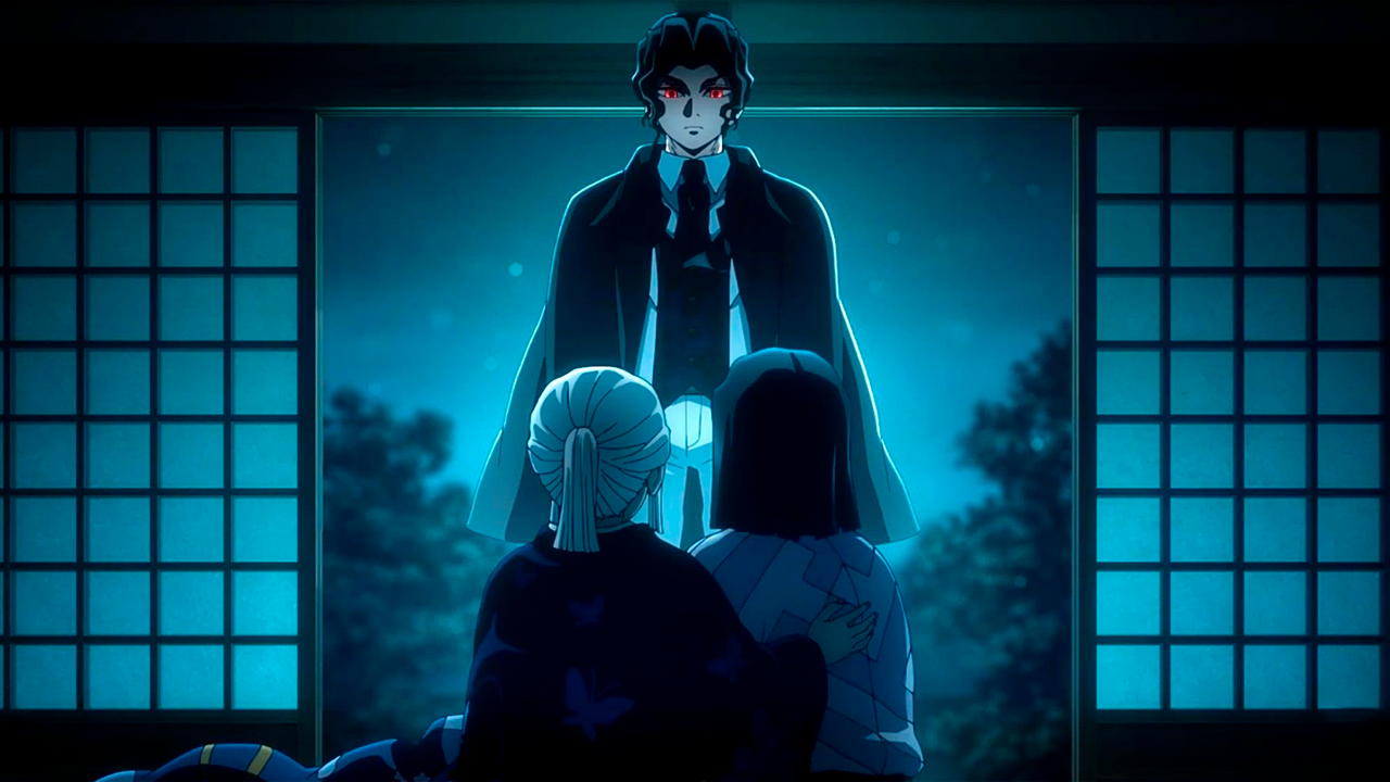 En varios episodios de esta temporada vemos a un par de ojos analizando todo a petición del líder de los Demonios, siguiendo a algunos cazadores en sus guardias nocturnas y rastreando su camino de regreso a un lugar y otro. Sabemos que Nakime y Muzan dedicaron días enteros a espiar a los miembros de la organización y la tragedia se anuncia cuando El Pilar del Viento aplasta uno de estos ojos con el número cuatro y se da cuenta de que han sido localizados en el episodio siete.