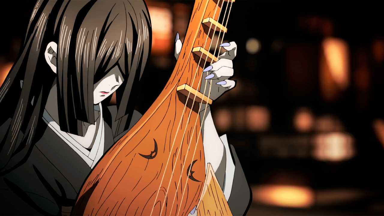 Este demonio no sólo se caracteriza por ser quien altera el orden de la Fortaleza Dimensional Infinita con cada nota que toca en su biwa, sino que gracias a la nueva cantidad de sangre de Muzan en su cuerpo es capaz de crear ojos autómatas que deambulen por todos lados. Esto ofrece una gran ventaja para los Demonios pues literalmente se convierte en los ojos de Muzan sin que alguno de los dos deba moverse de la Fortaleza.