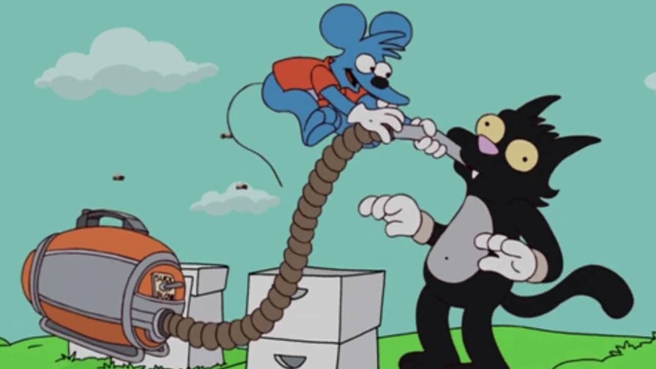 Seguramente recuerdas que dentro de la historia existe un programa de televisión que Bart ve religiosamente: Itchy and Scratchy. Concebida como una parodia de Tom y Jerry, caricatura en la que un ratón le hace la vida imposible a un gato, en dicha serie animada dentro del universo Simpson vemos acciones violentas que entretienen a los personajes de la obra de Matt Groening.