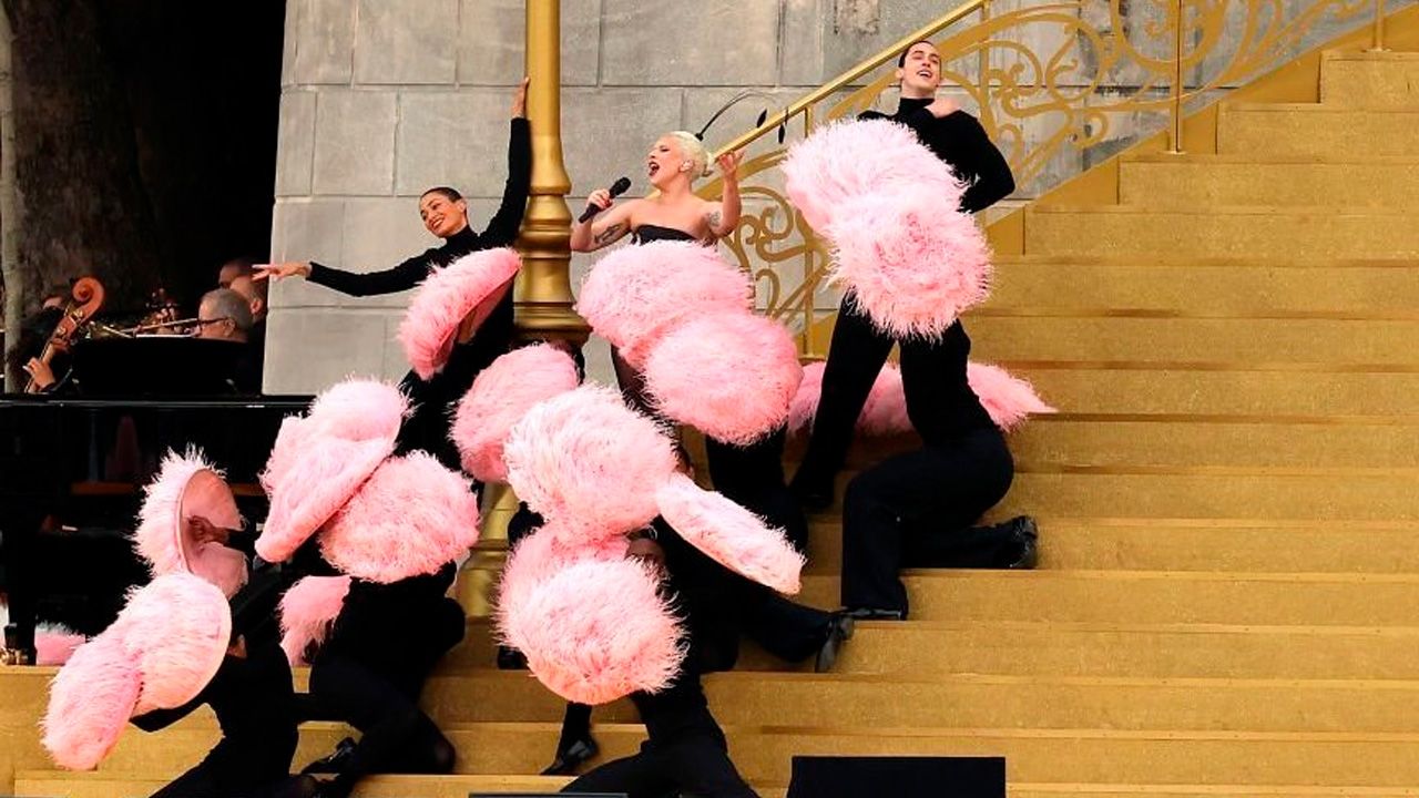 La protagonista de Nace una estrella fue la primera cantante en presentarse durante la ceremonia de inauguración, luego de un intro en el que se homenajearon películas como Indiana Jones y El fantasma de la Opera. Al estar en la capital francesa, obviamente no pudo faltar el guiño al burlesque, así que pudimos ver a la ganadora del Oscar bailar y cantar en un lugar que fácilmente nos recordó a otra saga en la que próximamente aparecerá.