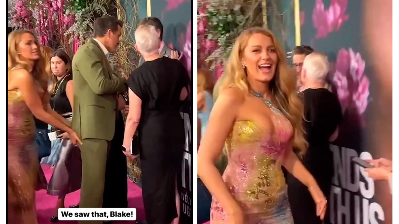 Durante la premier de la película en la Ciudad de Nueva York, donde la protagonista lució un vestido en homenaje a Britney Spears, fue captada en video mientras le agarró las pompas a Ryan cuando pasaba detrás de él. El actor de Free Guy se encontraba de espaldas platicando con dos personas más cuando Blake pasó y toqueteó la parte inferior de su cuerpo, por lo que después soltó una carcajada pícara.