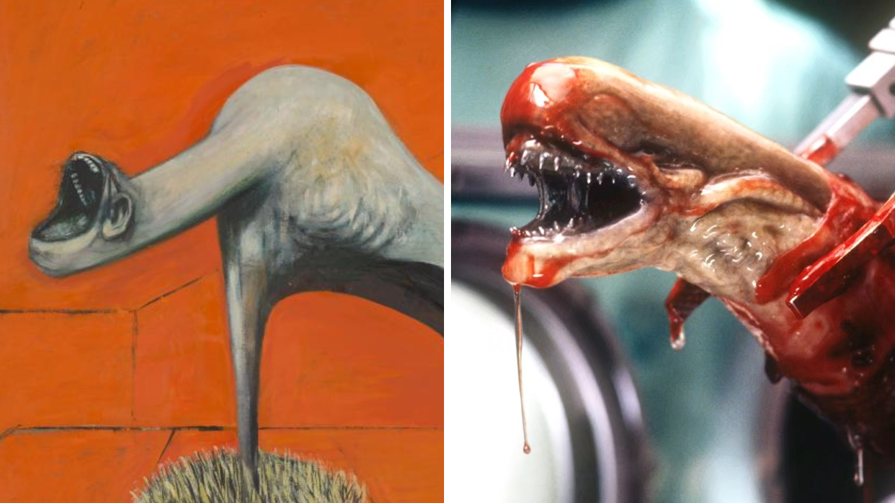 El escultor confesó que su inspiración principal para el diseño del Xenomorfo no solo provenía de su propia pintura, Necronom IV, sino también de una obra inquietante de otro gran artista: Tres estudios para figuras en la base de una crucifixión (1944) de Francis Bacon. Según Giger, este cuadro, con sus figuras desgarradas y bocas abiertas en un grito visceral, fue clave para desarrollar la aterradora criatura: “El personaje parece que desgarra la carne del hombre con su boca abierta y una explosión de dientes... es puro Bacon”, comentó el artista en el libro Giger’s Necronomicon II.