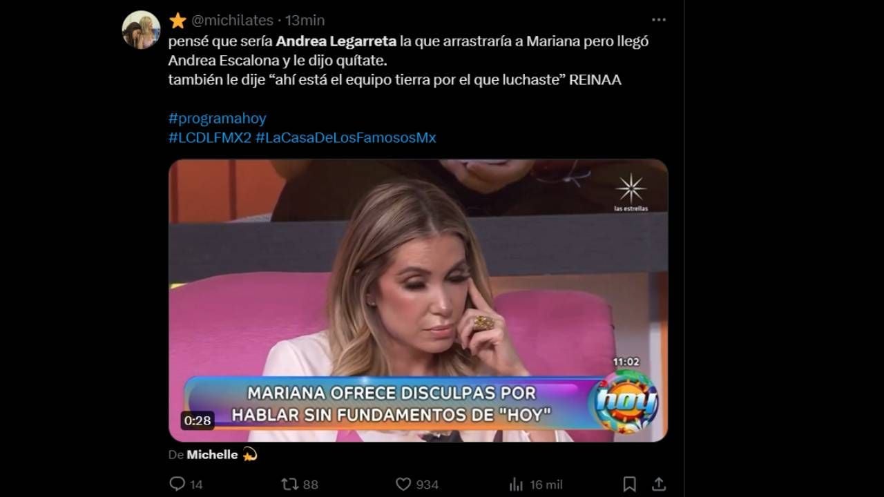 Este domingo se desató una nueva entre Arath de la Torre y Ricardo Peralta, quien ganó Masterchef Celebrity hace algunas ediciones, pero ahora la atención se ha posado sobre Mariana Echeverría, concursante que fue eliminada en la gala de hace unos días. Millones de internautas celebraron en redes sociales su salida del reality show, aunque una de las cosas que más les emocionaban era su visita al foro del programa matutino Hoy.