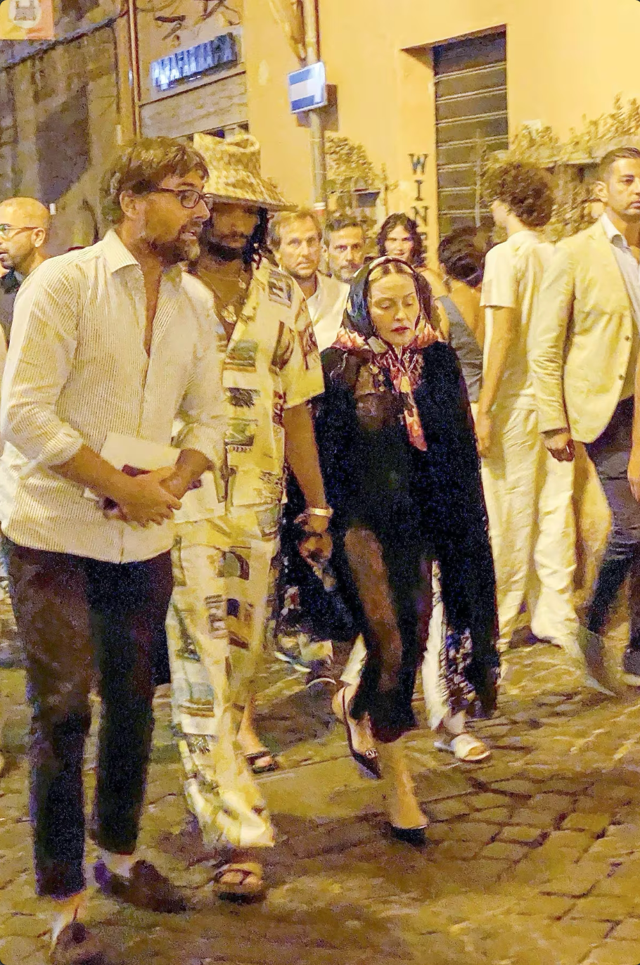 Ahora mismo la también actriz de Evita se encuentra en Italia por invitación d e los diseñadores de moda Domenico Dolce y Stefano Gabbana. Sin embargo, nuevas imágenes filtradas muestra a la Reina del pop caminando por la calle mientras es ayudada por el futbolista jamaiquino Akeem Morris, quien se rumora es su nueva pareja sentimental.