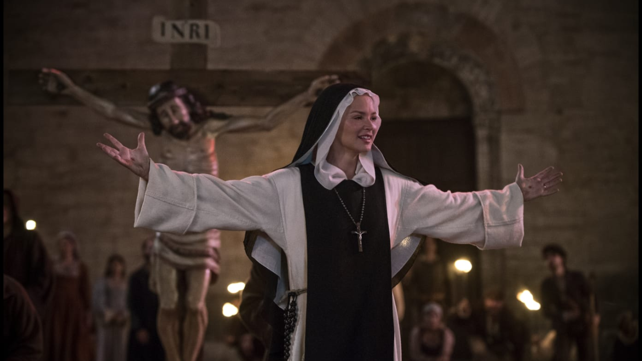 La historia de Benedetta, interpretada por Virginie Efira, va mucho más allá de la fe religiosa. Su vida en el convento está marcada por visiones extáticas de Jesucristo, ceremonias inusuales, y una relación amorosa con una joven novicia llamada Bartolomea (Daphné Patakia). Verhoeven utiliza estos elementos para explorar temas de poder y deseo, manteniendo una ambigüedad constante sobre las verdaderas intenciones de su protagonista.