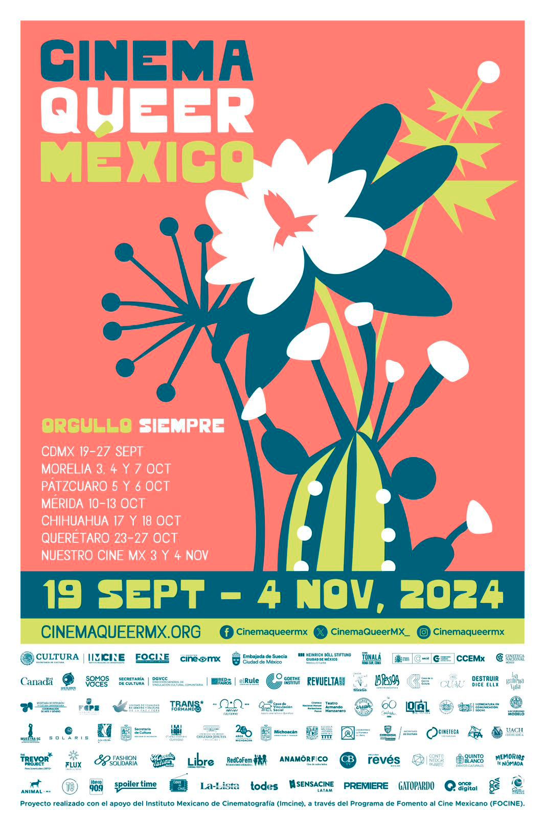 Además de su exhibición en la Ciudad de México, Cinema Queer 2024 también se exhibirá en Morelia, Querétaro y Métrica, llegando por primera vez a Chihuahua y Pátzcuaro. Lo mejor de su realización es que todas las proyecciones son gratuitas, con excepción de las funciones en la Cineteca Nacional. Esta edición del festival será aún más especial pues el eje central de la programación gira en torno a los jóvenes y personas de la tercera edad.