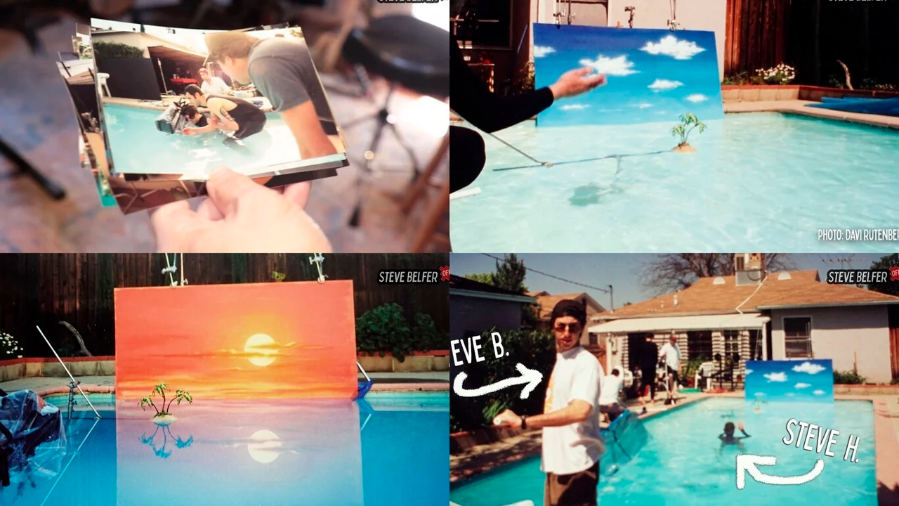 Belfer mostró una serie de fotografías e imágenes "nunca antes reveladas" en las que se observa una buena parte del proceso para grabar esta escena. Una pequeña isla flota en la alberca y detrás de ella hay distintos paisajes entre puestas de Sol y cielos despejados, todos pintados a mano, que pronto se volvieron elementos recurrentes en la serie.