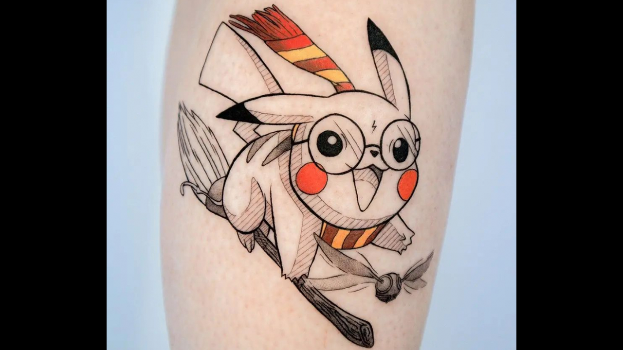 Un usuario con el nombre de "gamer.ink" compartió en Instagram una imagen de un tatuaje en el que aparece el tierno ratón eléctrico montado en una escoba mágica tal y como lo hacen los estudiantes del Colegio Hogwarst de Magia y Hechicería. Pikachu se ve sumamente feliz, y aunque no se podría saber si se trata de una Nimbus 2000 o de una Saeta de Fuego, seguramente es una escoba muy rápida que, combinada con la agilidad del Pokémon, sería invencible.