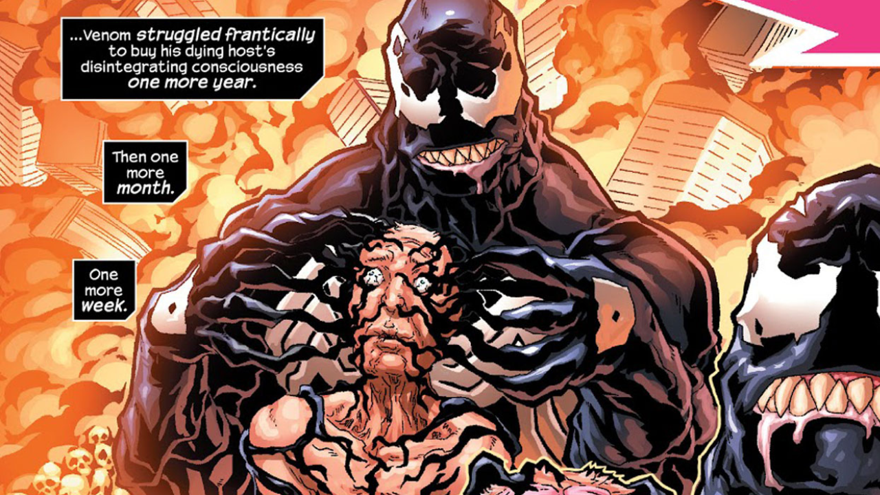 El cómic explora el fin no solo de Eddie, sino también de la humanidad y del universo tal como lo conocemos. En la historia, el simbionte Venom, un ser inmortal y fragmento de una mente colmena destruida, ha vivido una larga y compleja relación con Eddie. A medida que el cuerpo humano de Eddie envejece, Venom intenta desesperadamente conservarlo, recurriendo a medidas extremas para prolongar su vida. A lo largo de las décadas, Venom sustituye cada órgano y célula deteriorada de Eddie con versiones simbióticas, fusionando ambos seres de una manera irreversible.