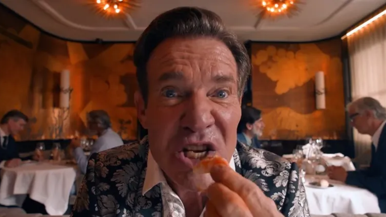 Mientras Harvey explica las razones de su despido, devora un plato de camarones de manera grotesca, usando las manos y hablando con la boca llena. La dirección de fotografía de Benjamin Kracun amplifica el impacto al distorsionar la imagen, acercándose al rostro de Quaid y enfocándose en los camarones triturados. Este enfoque visual, combinado con el contexto de la acción y el diálogo ofensivo del personaje, convierte la escena en una experiencia incómoda y difícil de olvidar.