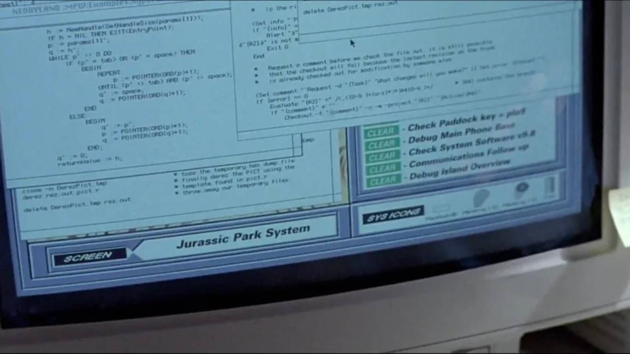 Si recuerdas con detalle lo que sucede en Jurassic Park, seguramente tienes en mente que el actor de Seinfeld era el programador jefe del parque y en un momento manipula los sistemas de seguridad para abrir el laboratorio y escapar con el material biológico. En la toma se muestra cómo tiene abiertos unos códigos para ejecutar dicha acción desde su Macintosh Quadra 700, pero lo que desarrolló en dicha computadora es lo que ha intrigado a los expertos en programación y tecnología.