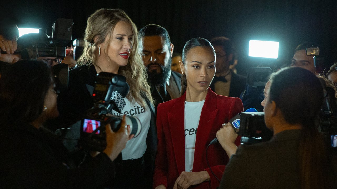 Emilia Perez es una película musical de crimen y comedia dirigida por Jacques Audiard. La trama sigue a Rita, una abogada talentosa pero subestimada, interpretada por Saldaña, quien recibe una propuesta inesperada: ayudar al temido líder de un cártel mexicano, "El Manitas", a desaparecer y comenzar una nueva vida como la mujer que siempre ha deseado ser, Emilia, papel asumido por Karla Sofía Gascón.