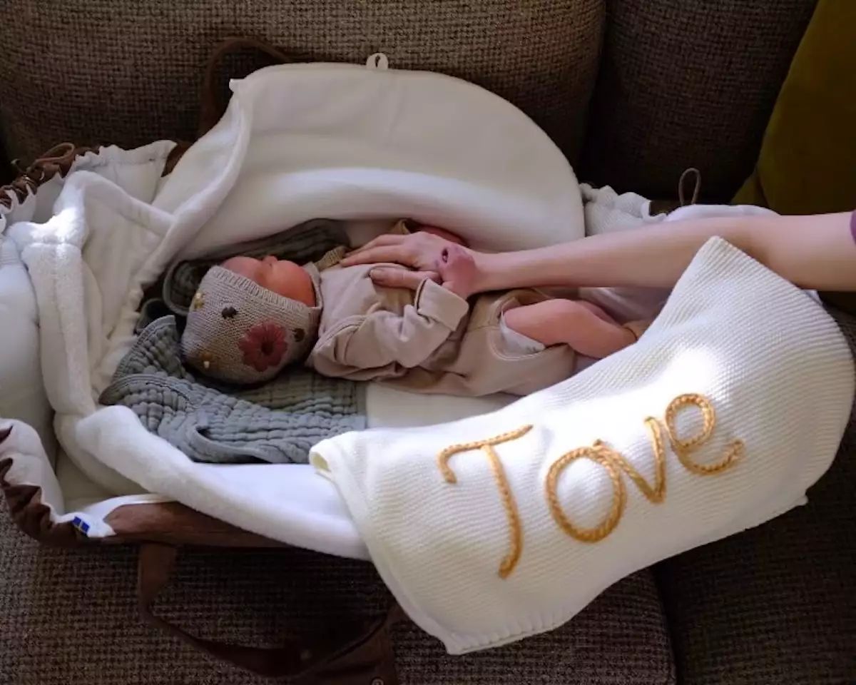 "Bienvenida al centro de nuestro mundo, Tove Jane McDowell", escribió la actriz junto a la fotografía, acompañando el mensaje con un cariñoso agradecimiento a la mujer que ayudó a traer a su hija al mundo mediante un proceso de gestación subrogada. "Las palabras nunca expresarán nuestra infinita gratitud por nuestra increíble (madre) subrogada y por todos los que nos ayudaron en el camino", agregó. La actriz de 35 años de edad, y que concluyó su publicación con el mensaje: "Te amamos hasta la Luna y de vuelta otra vez...".