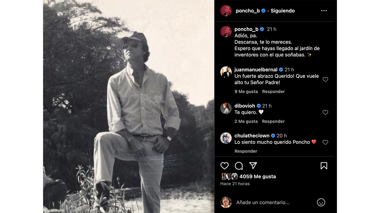 Y fue a través de Instagram donde el actor compartió que su padre falleció, publicación acompañada de una fotografía con el siguiente mensaje de despedida: “Adiós, pa. Descansa, te lo mereces. Espero que hayas llegado al jardín de inventores con el que soñabas”.