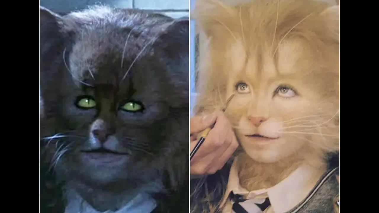 La escena en cuestión pertenece a Harry Potter y la Cámara Secreta, donde Hermione, junto con Harry y Ron, decide preparar la poción multijugos para infiltrarse en la casa de Slytherin y obtener información de Draco Malfoy. Mientras que Harry y Ron logran transformarse en Crabbe y Goyle sin problemas, Hermione comete un error crucial: en lugar de tomar un cabello de una chica de la casa de Slytherin, sin darse cuenta, usa un pelo de gato. Como resultado, su transformación sale terriblemente mal y termina con orejas puntiagudas, un hocico felino y un pelaje que cubre su rostro.