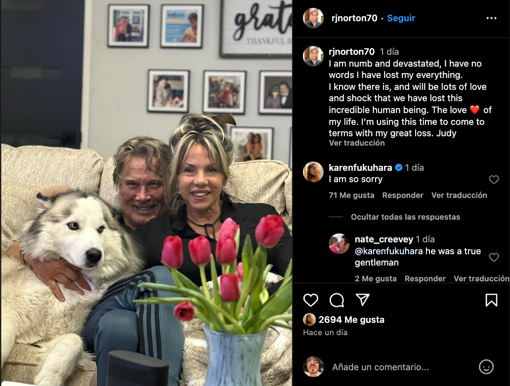 Fue a través de Instagram donde su esposa, Judy Green, compartió una emotiva despedida: "Estoy paralizada y devastada, no tengo palabras. Lo he perdido todo", mencionó.