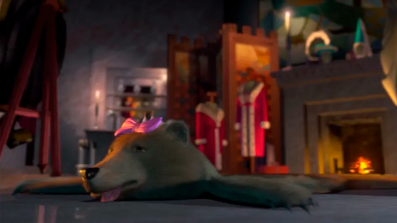 Lo más triste es que la piel de oso en el suelo llevar el moño rosa característico de la mamá oso de Ricitos de Oro. Esto indicaría que su cruel destino fue convertirse en un adorno del despiadado rey antes de que las criaturas fuesen enviadas al pantano del ogro verde.
