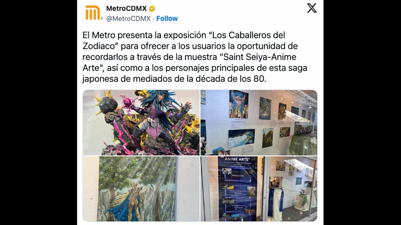La saga de Atena y sus guerreros ha invadido al Sistema de Transporte Colectivo de la caótica capital mexicana con un homenaje digno de su legado. La exposición está montada en la estación Chabacano, que hace correspondencia con la Línea 2, la Línea 8 y la Línea 9 del Metro. Este es uno de los puntos las más transitados de la Ciudad de México, y ahora, se ha convertido en parada obligatoria tanto para fans del anime como para los que buscan una actividad divertida.