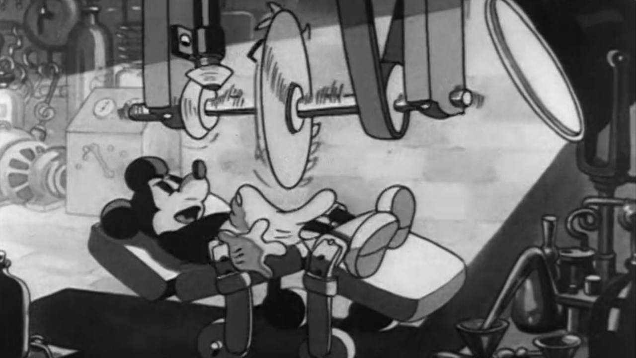 Lanzado en plena era dorada de la animación en blanco y negro, The Mad Doctor comienza con Mickey dormido tranquilamente hasta que los aullidos desesperados de Pluto lo despiertan. Su fiel compañero ha sido secuestrado por un siniestro científico, el Doctor XXX, y Mickey se lanza a rescatarlo atravesando tormentas, trampas mortales y pasadizos macabros. La aventura alcanza su clímax cuando el ratón es atrapado por el villano y atado a una mesa, sobre la cual desciende lentamente una sierra giratoria destinada a partirlo en dos. Justo en ese momento, el relato revela que todo ha sido una pesadilla, y Mickey se reencuentra con su perro, a salvo.